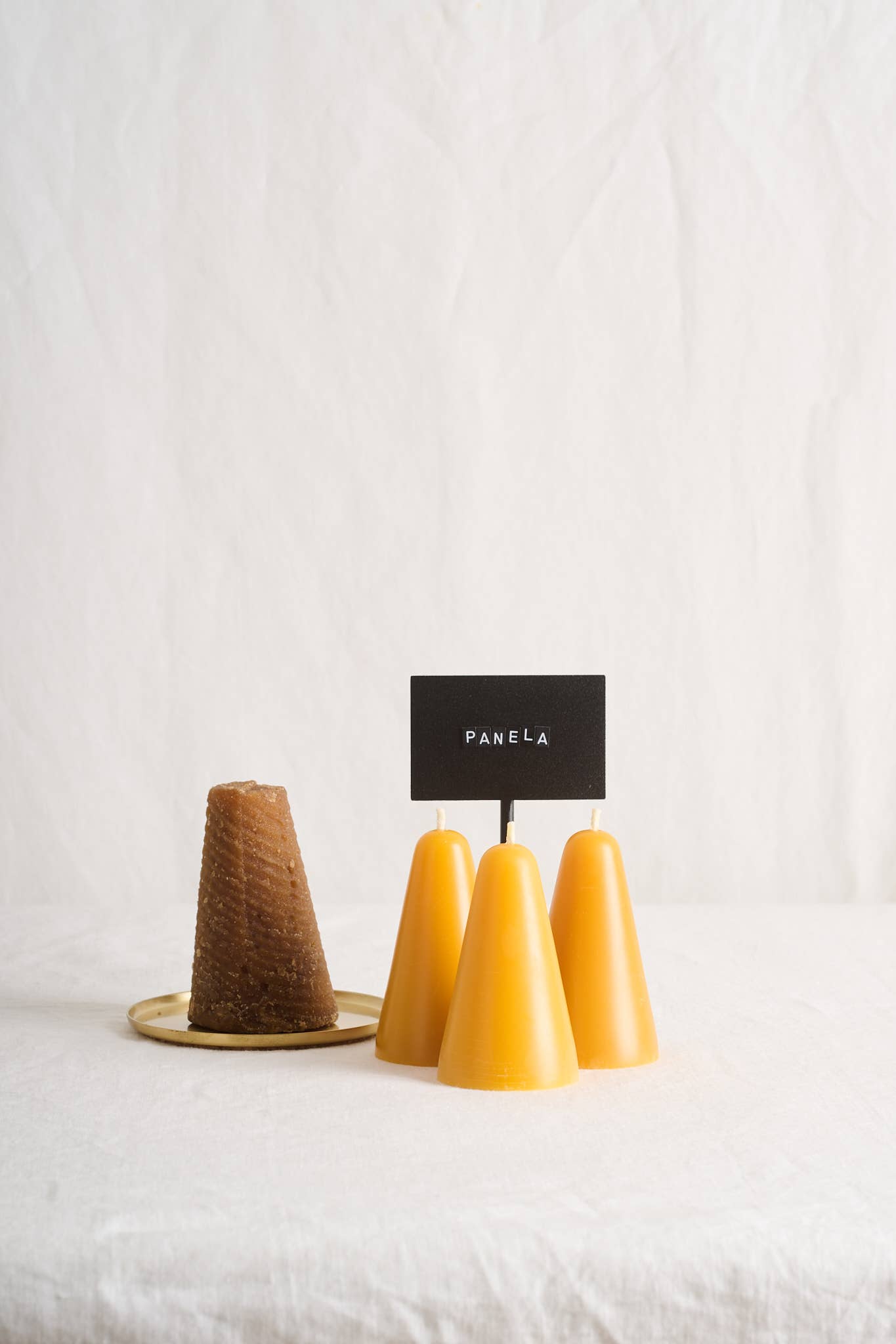 Panela is made from the juice collected after crushing sugar cane, which is then boiled before pouring into molds. It’s an ancient practice, and this is one of the distinctive shapes used in traditional molds. It’s a muted shape that ties into our bakery collection.